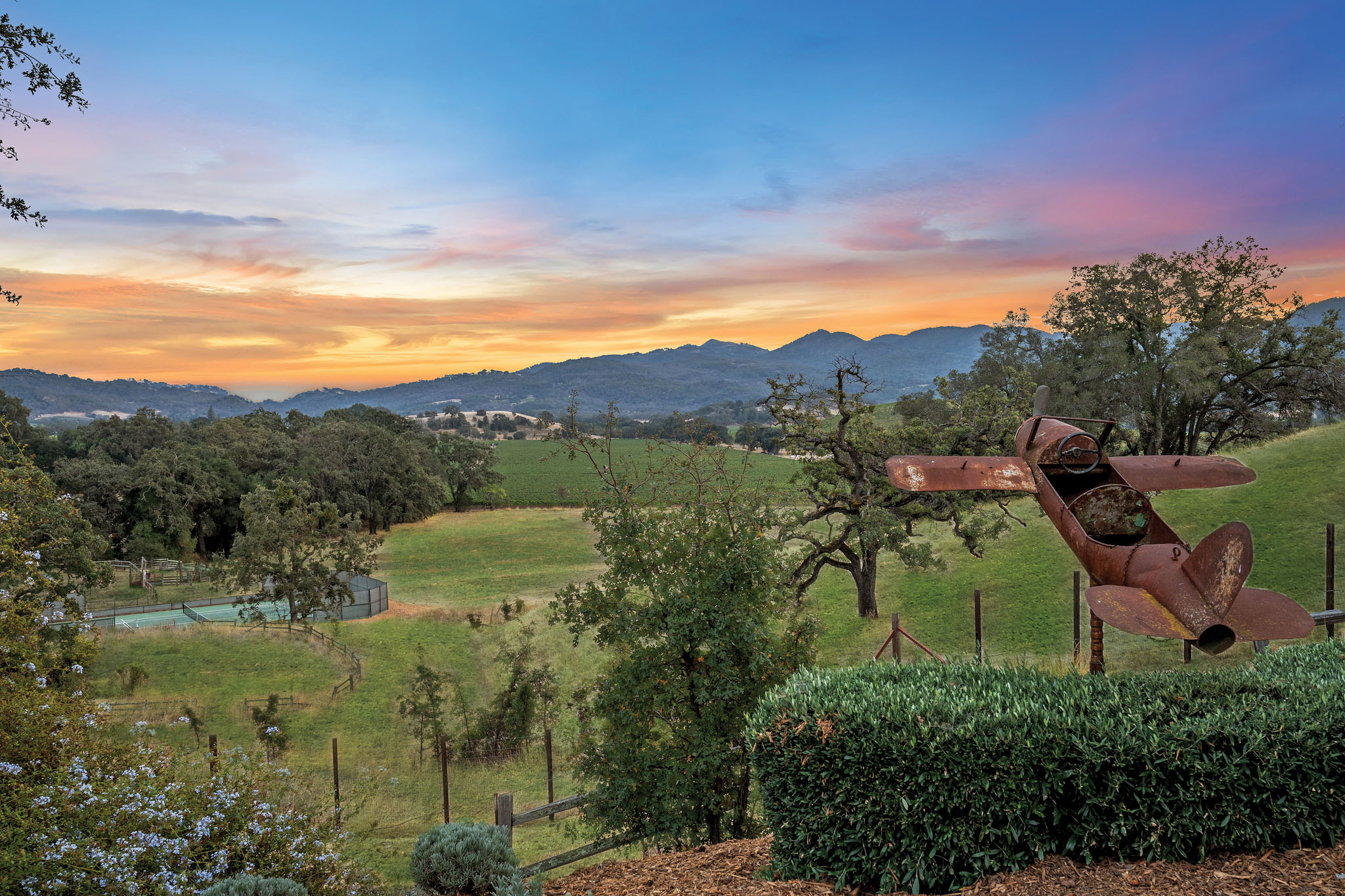 This 62-acre property has room for vineyards, horses, and livestock and offers a Napa lifestyle like no other. A lovely road takes you past your own ranch house, horse facilities, pickleball court, and more on the way up a gentle hill to a rustic and yet elegant home with fine finishes and spectacular to-the-horizon southern panoramic views.